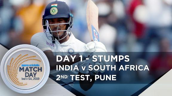 Apart from some ordinary luck, South Africa's lengths were either too full or too short. A ball after debutant Anrich Nortje, playing ahead of the extra spinner, clocked him on the head, Agarwal was good enough to cover-drive a full ball for four. As Nortje went fuller searching for assistance, Agarwal drove him for three fours in another over.