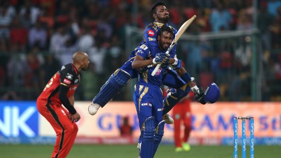 With only one over left from Tymal Mills, the rest of the last four would have to be bowled by the spinners and S Aravind. Pollard fell in the 18th over, to Chahal, but by then Mumbai only needed 17 off 15. Hardik Pandya arrived at the crease to help his brother ease them over the line.