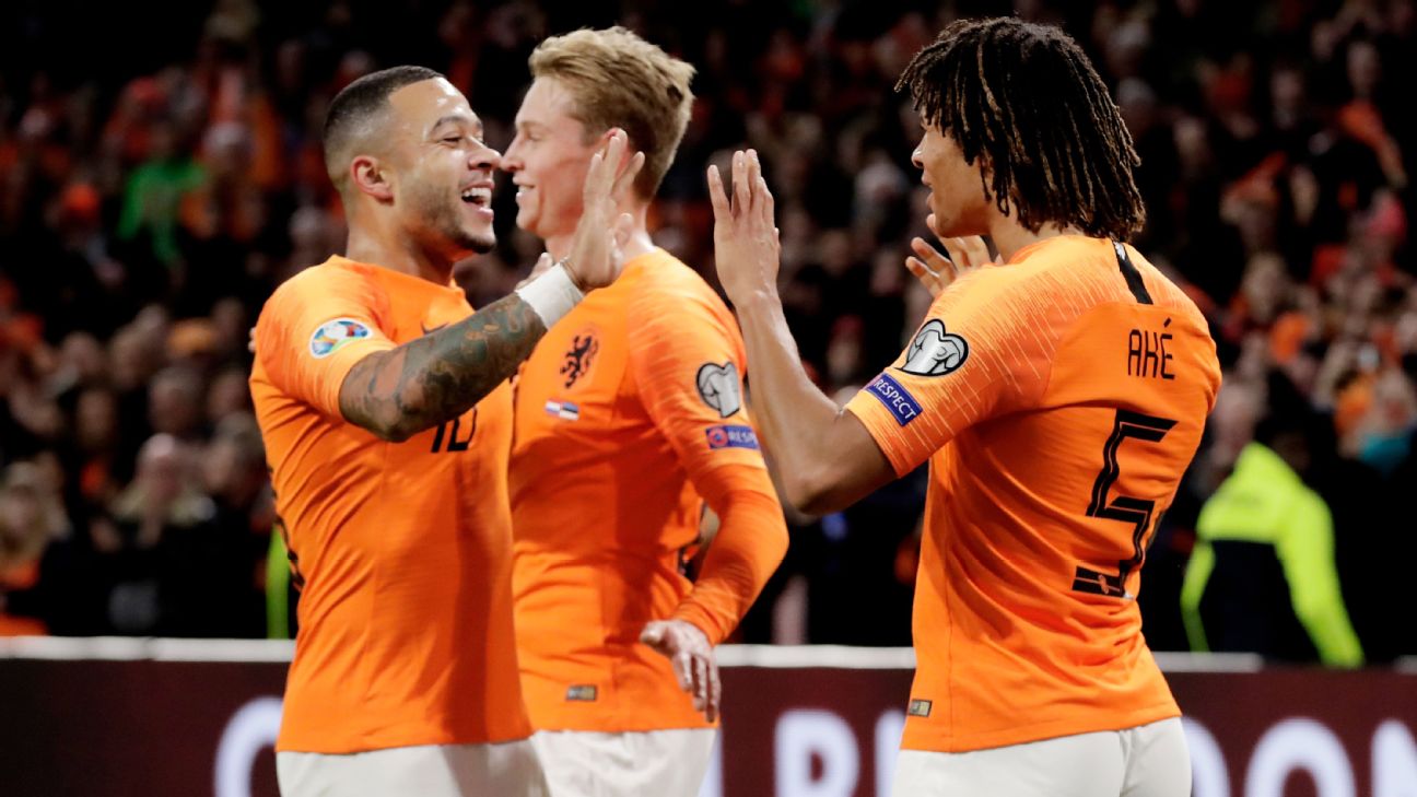 Liverpool's Gini Wijnaldum scored a hat trick for the Netherlands. Watch Euro qualifying on ESPN+.